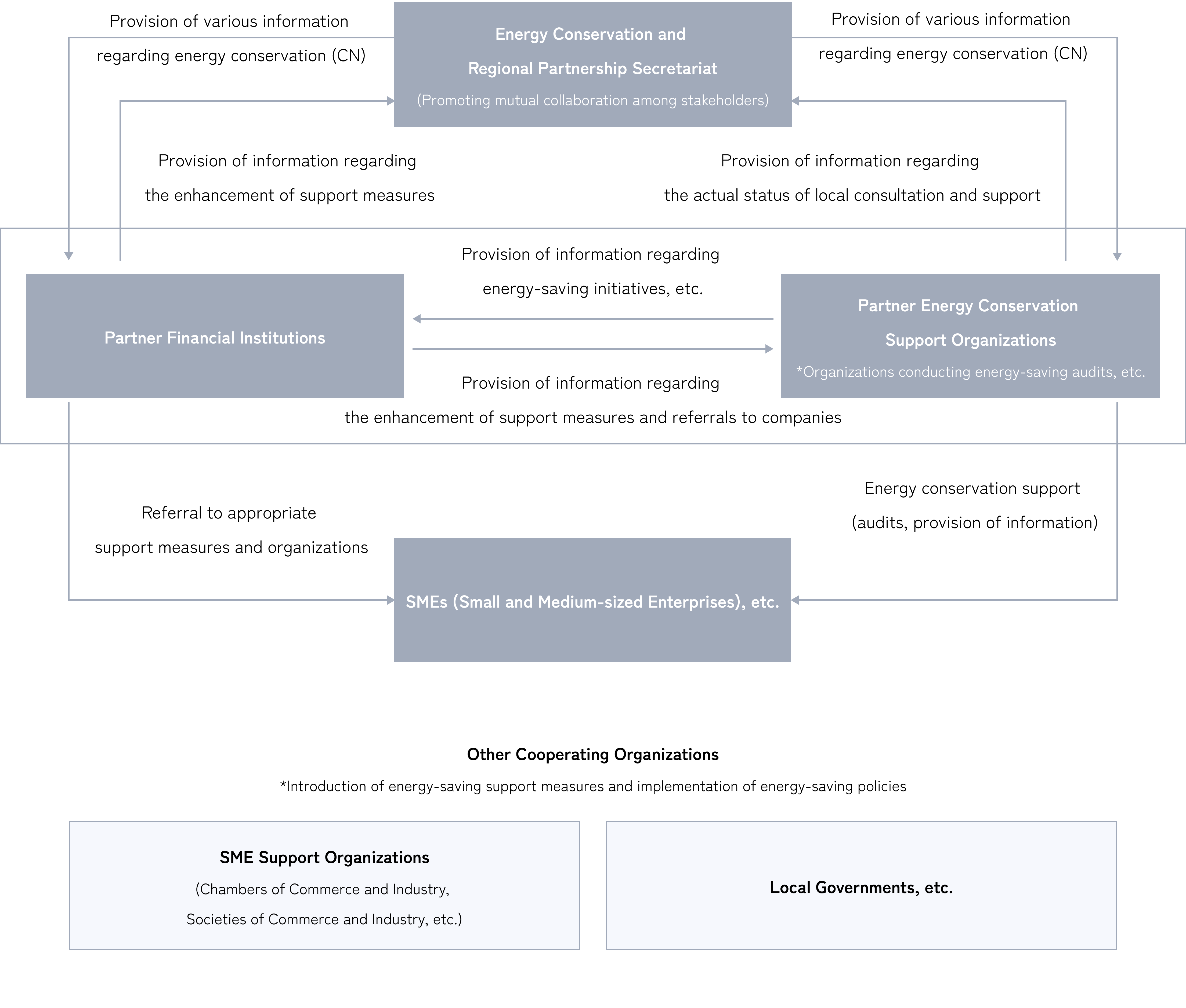 We will assess the actual status of energy conservation initiatives undertaken by regional SMEs and other businesses, and provide appropriate and continuous support tailored to their needs.