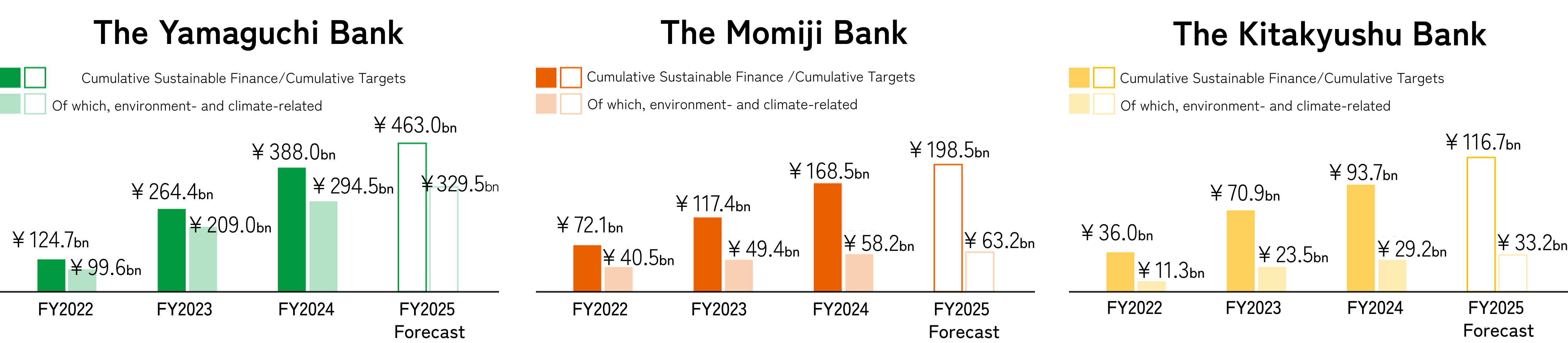 In FY2024, the calculation scope covers Yamaguchi Financial Group and its banking subsidiaries (The Yamaguchi Bank, The Momiji Bank, and The Kitakyushu Bank); we will continue to expand the scope and enhance the accuracy of our calculations.