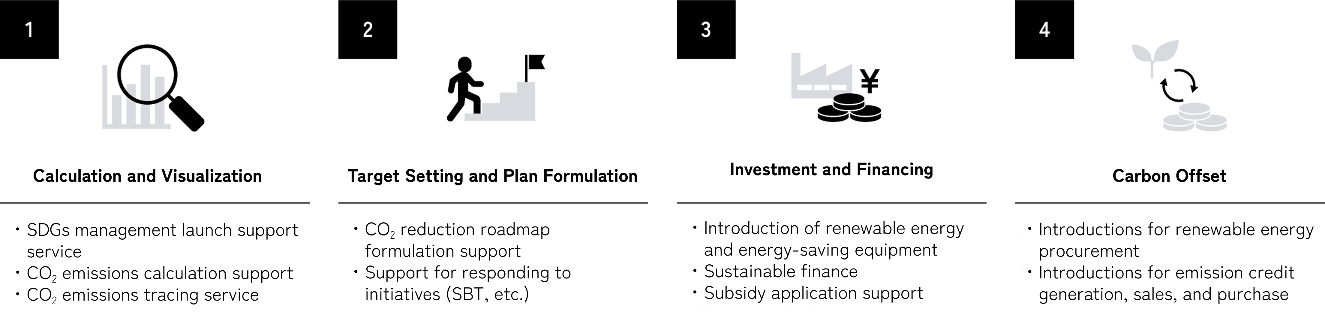 The Group views society’s response to climate change as an opportunity and provides a wide range of financial and non-financial solutions to support customers’ initiatives toward carbon neutrality and the reduction of GHG emissions.