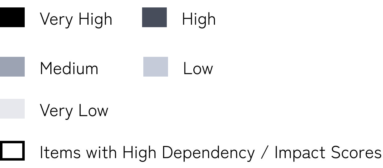 - The intensity of the heatmap coloring reflects not only dependencies and impacts but also the proportion of loan balances.