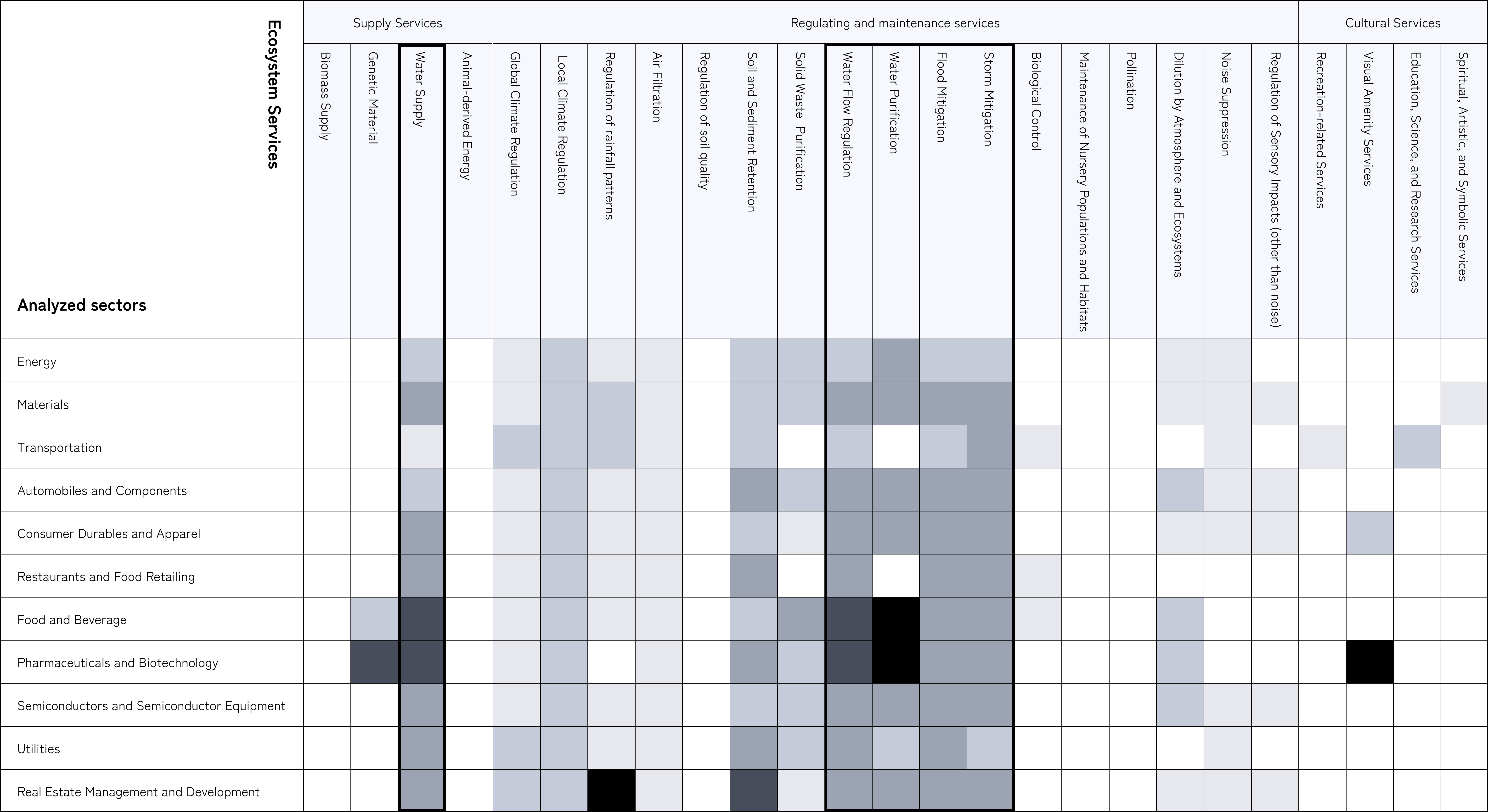 As a result of the analysis, the trends in our loan portfolio showed a high "dependency" on water-related ecosystem services, and regarding "impact," there was a significant influence on "the discharge of harmful pollutants into water and soil" and "disturbances (such as noise and light)."
