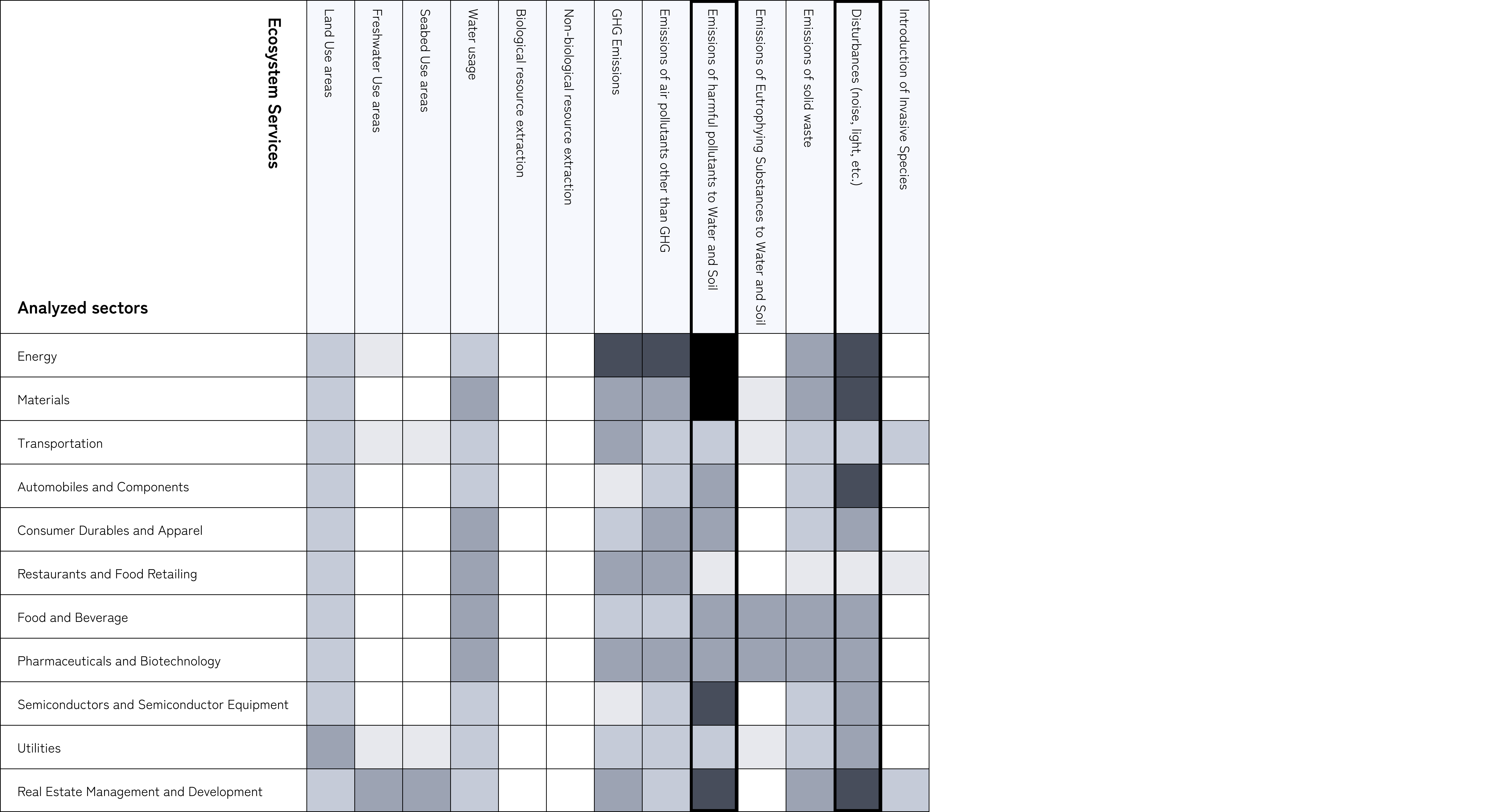 We are conducting a preliminary analysis using "ENCORE," a global tool for evaluating the magnitude of nature-related dependencies and impacts in business activities, to understand nature-related contact points at the sector level within the loan portfolios of the three banks in the Group.