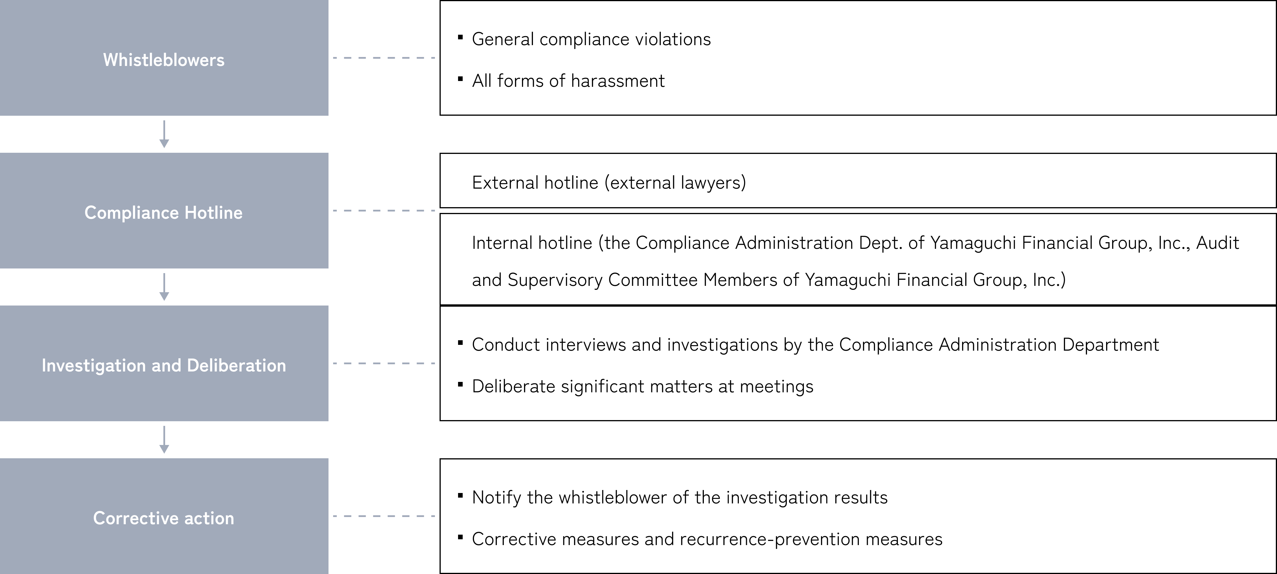 • The Compliance Administration Department immediately investigates the facts