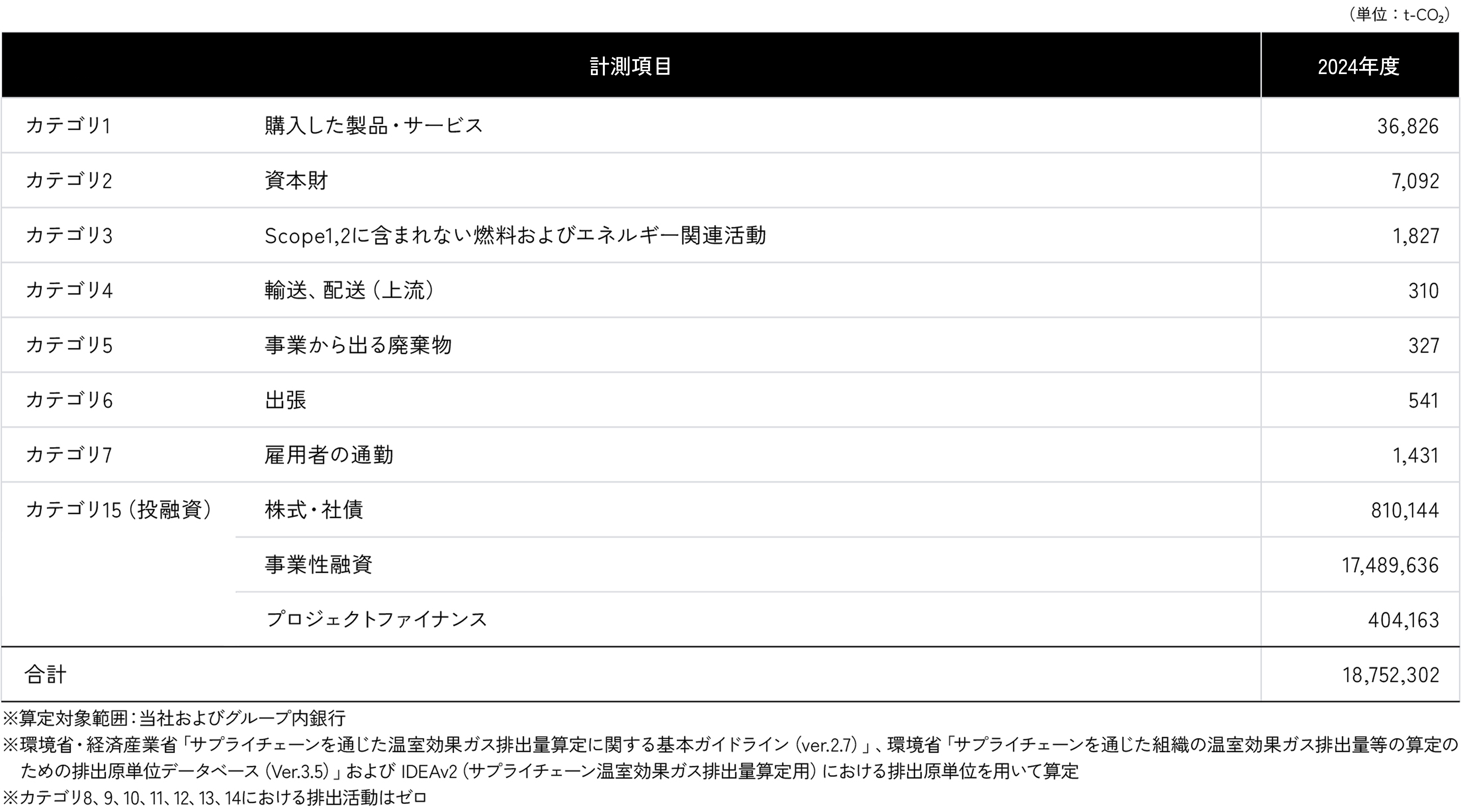 2024年度は、グループ内銀行における「株式・社債」、「事業性融資」および「プロジェクトファイナンス」を対象として算定を実施しました。