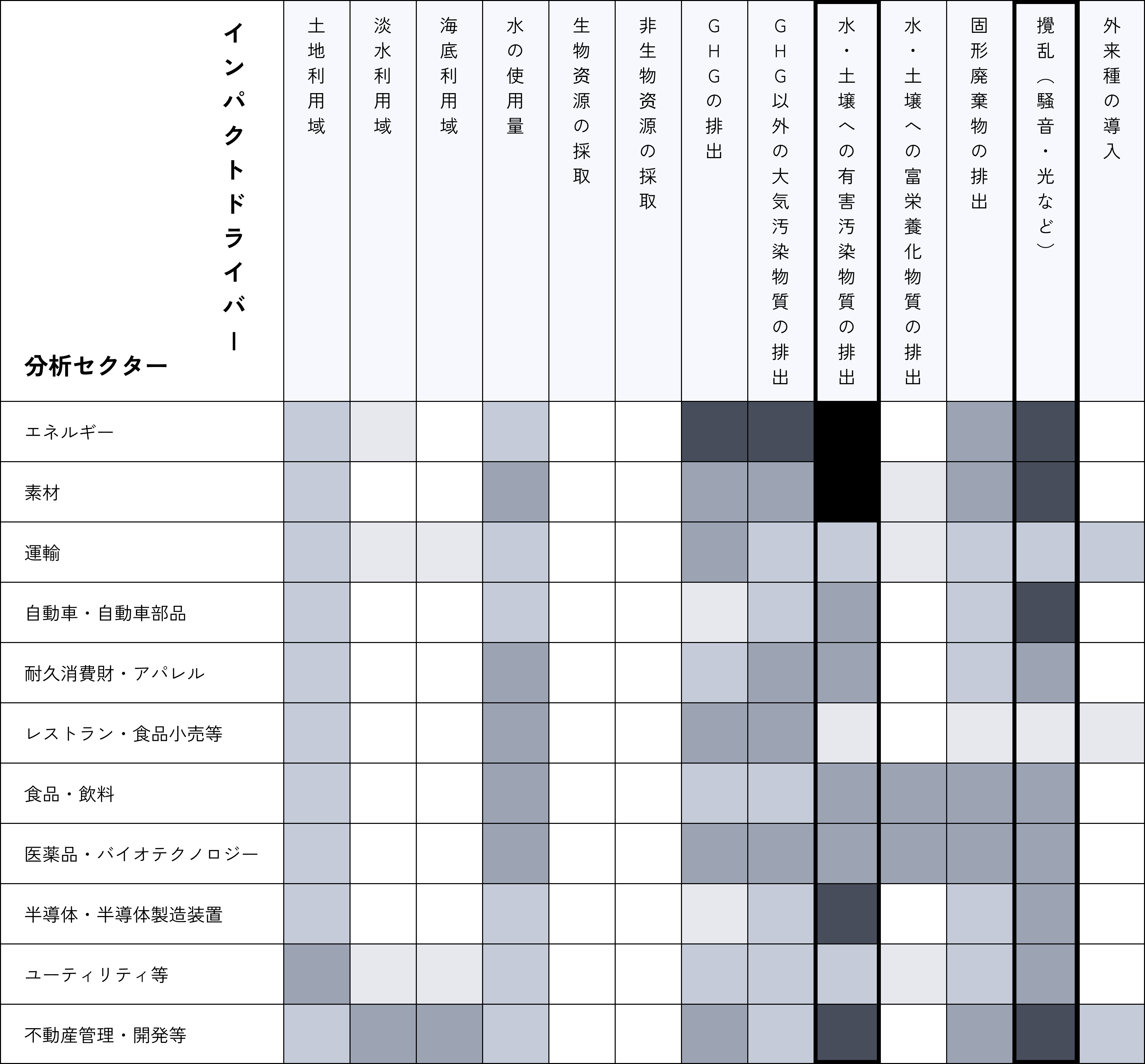 - ヒートマップの色の濃淡は、依存・インパクトに加え、貸出金残高割合の大きさを勘案