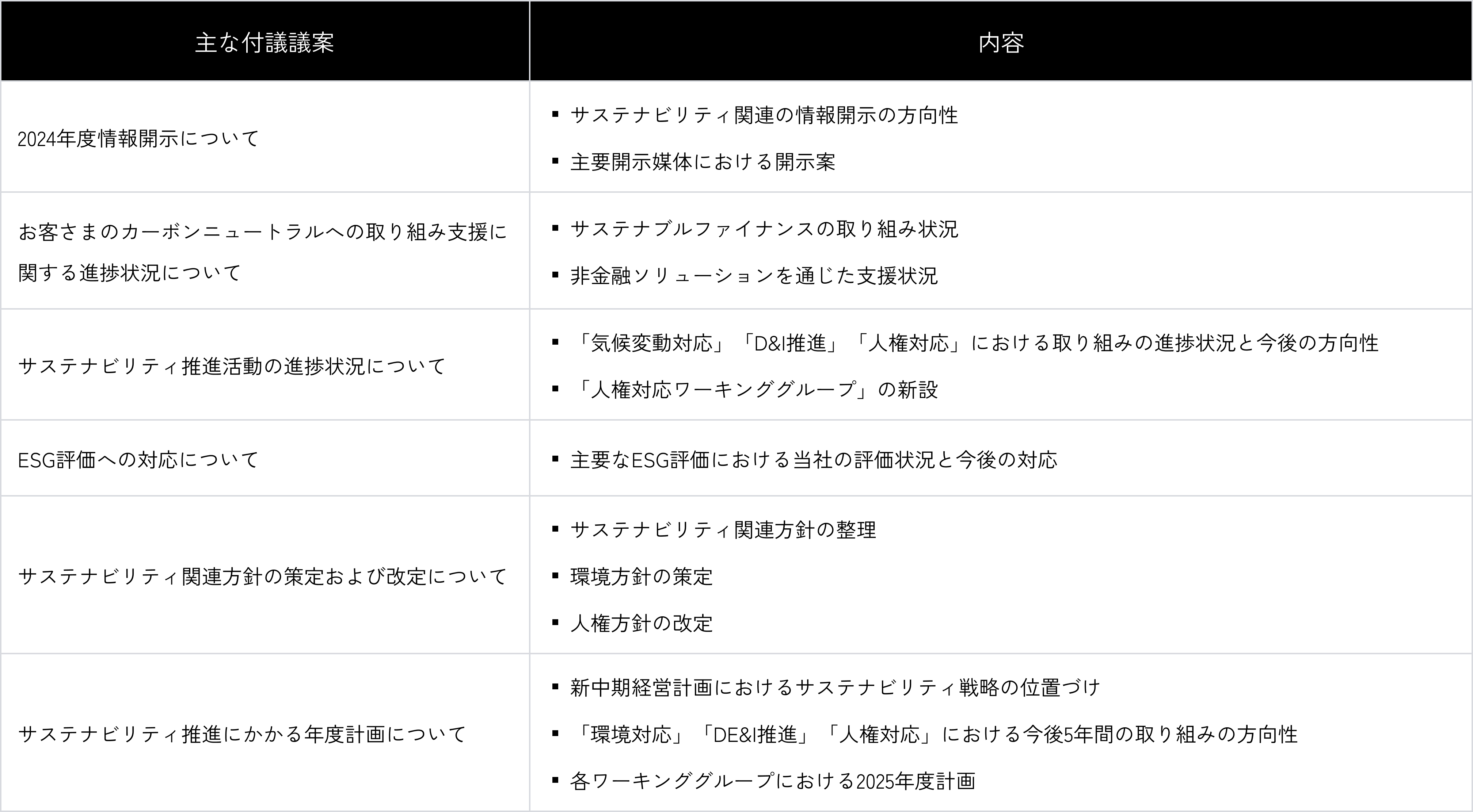 取締役会への主な付議事項(2024年度以降)