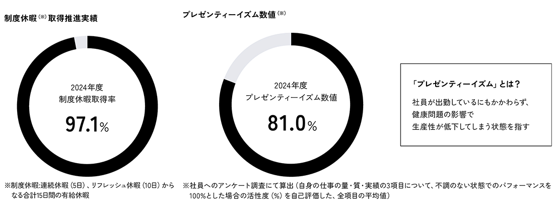 「働きがい」の追求においては「社員のキャリア自律度向上」を、「働きやすさ」の追求においては「社員のウェルビーイング向上」をテーマに掲げ、各テーマの柱となる取り組みに基づき、各種施策を推進していきます。
